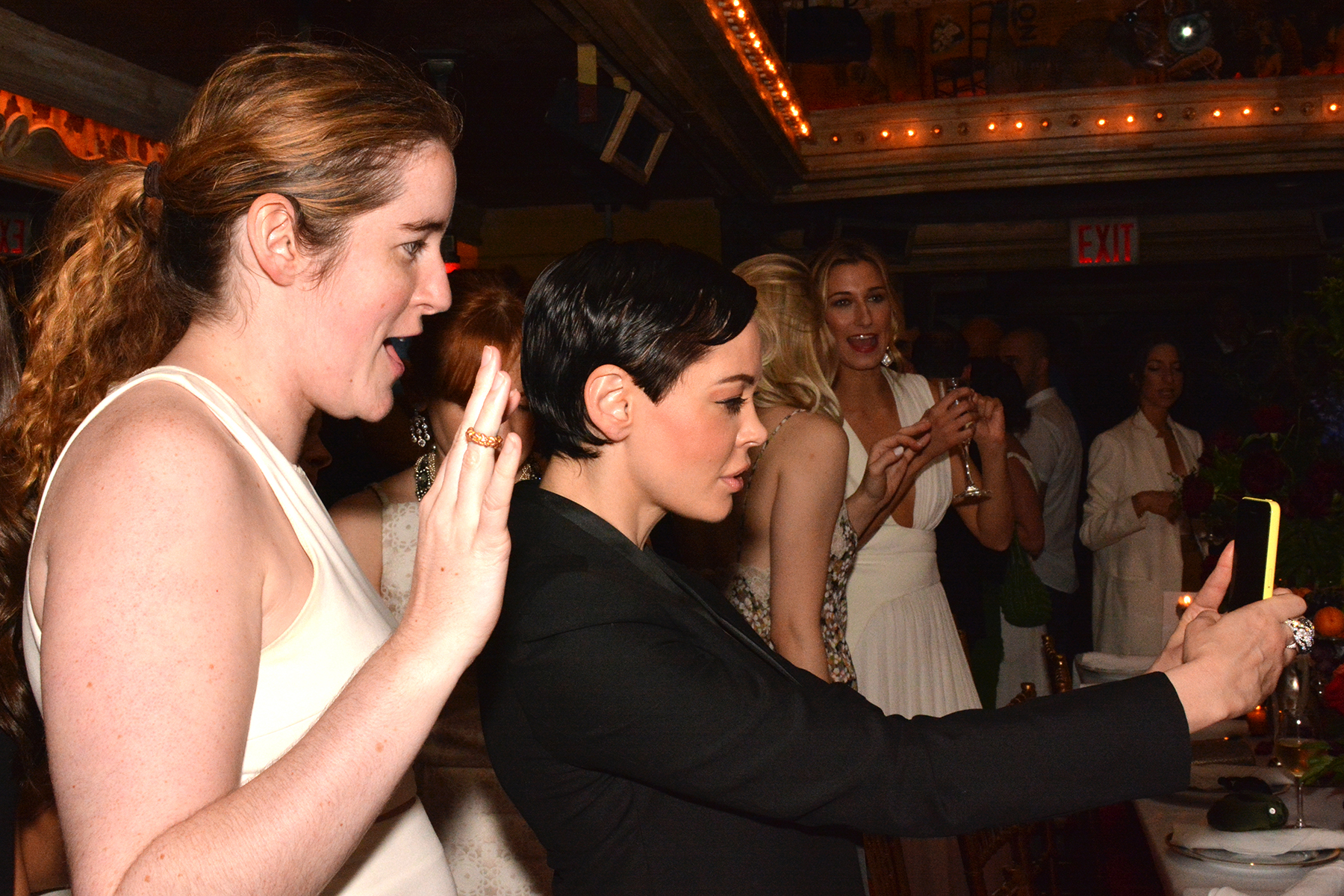 Actress and filmmaker Rose McGowan poses for a selfie before sitting down at the dinner table.