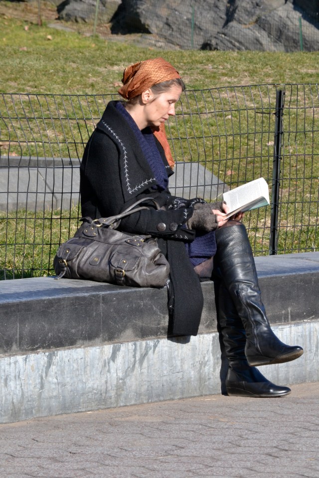Bohemian Bookworm A silk head scarf, wool wrap, riding boots, and a worn leather satchel, create a very Bohemian look while reading your book in Central Park. Share this: Click to share on Facebook (Opens in new window) Facebook Click to share on LinkedIn (Opens in new window) LinkedIn Click to share on X (Opens in new window) X Click to share on Reddit (Opens in new window) Reddit Click to share on Pinterest (Opens in new window) Pinterest Click to share on Tumblr (Opens in new window) Tumblr Like Loading... Related