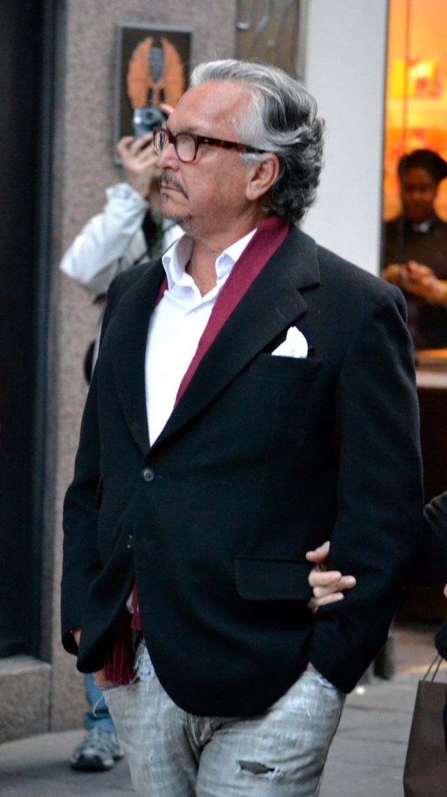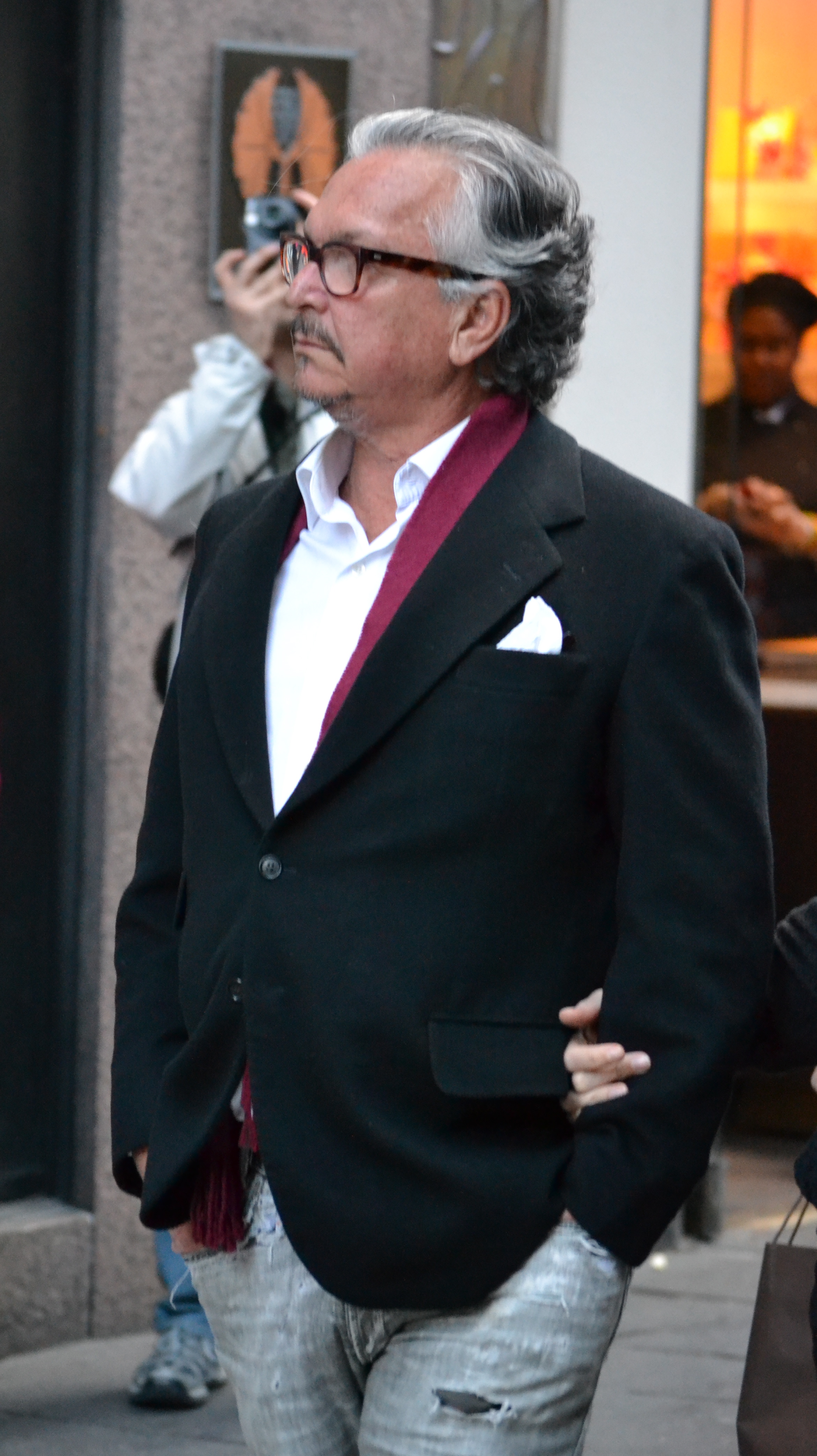 He doesn't always wear a sport coat, but when he does he dresses it up with a scarf and pocket square.
