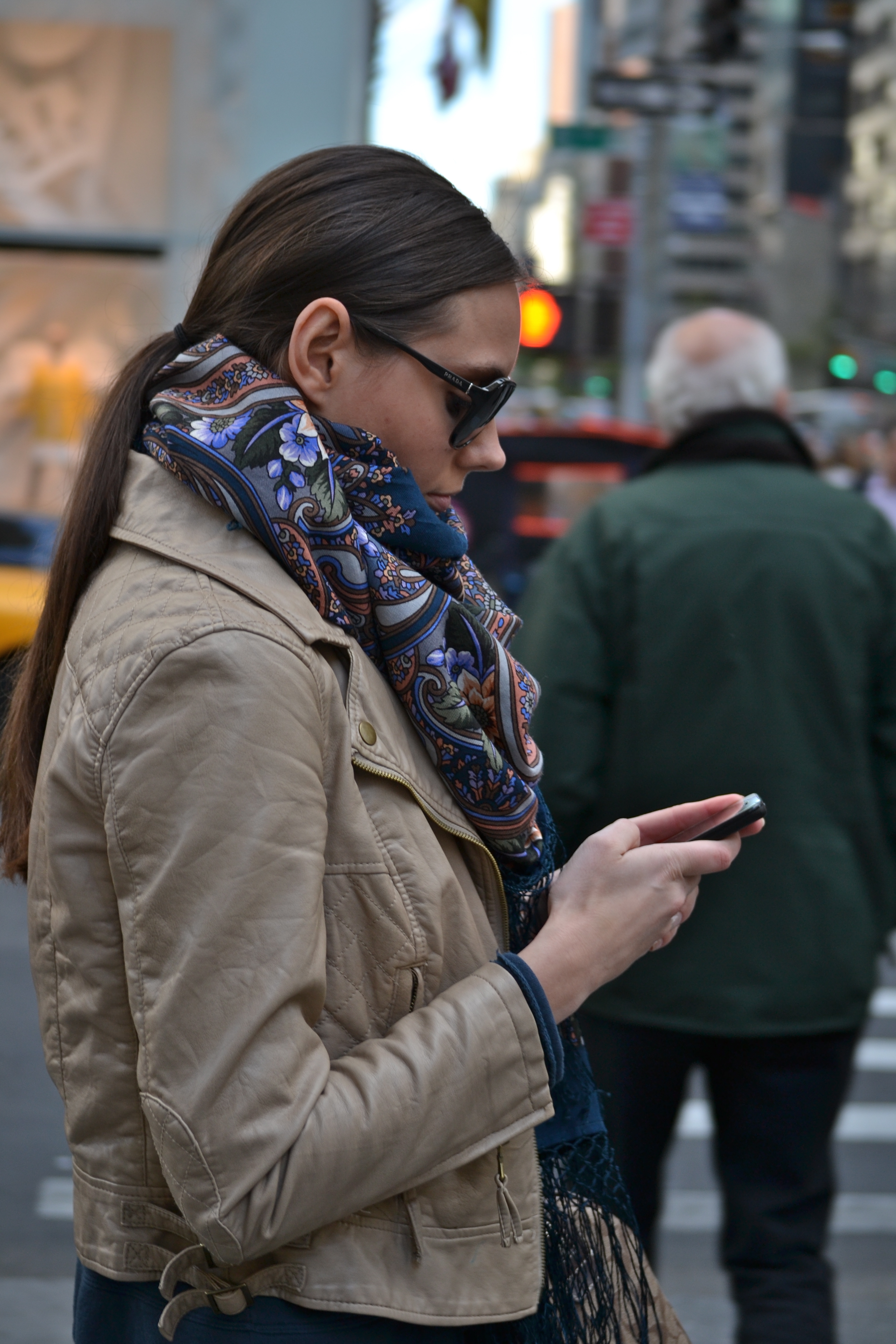 A Coach handbag, colorful scarf, big dark sunglasses, and a radiant smile, help to keep you being mistaken for a celebrity walking the streets.