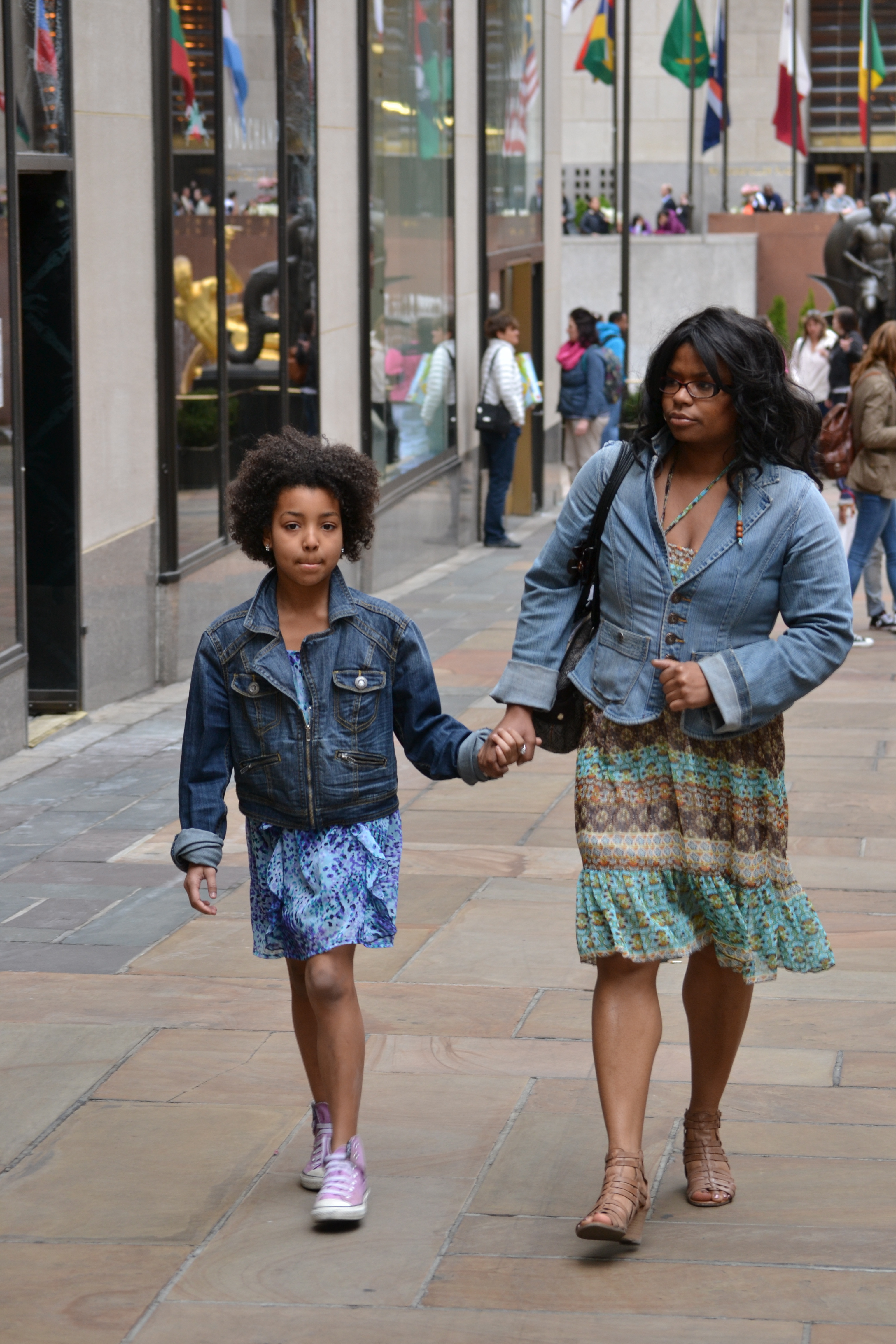 There's no need for a tailor these days. The go-to move instead, is to roll or cuff your clothes. This young man, waiting for a walk sign, does just that. His chinos are rolled up to just above his hiking boots (the red laces are a nice touch). the sleeves on his denim over shirt are rolled, creating a 3/4 length look. Underneath the denim he has a charcoal v-neck which shows a little of his chest tattoo.